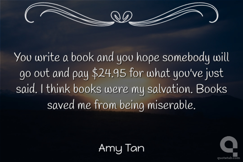 You write a book and you hope somebody will go out and pay $24.95 for what you've just said. I think books were my salvation. Books saved me from being miserable.
