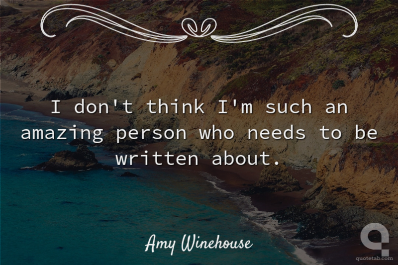 Amy Jade Winehousewas an English singer and songwriter known for her deep expressive contralto vocals and her eclectic mix of musical genres, including soul, rhythm and blues, and jazz. Winehouse's debut album, Frank, was a critical success in the UK and was nominated for the Mercury Prize. Her follow-up album, Back to Black, led to five 2008 Grammy Awards, tying the then record for the most wins by a female artist in a single night, and made her the first...