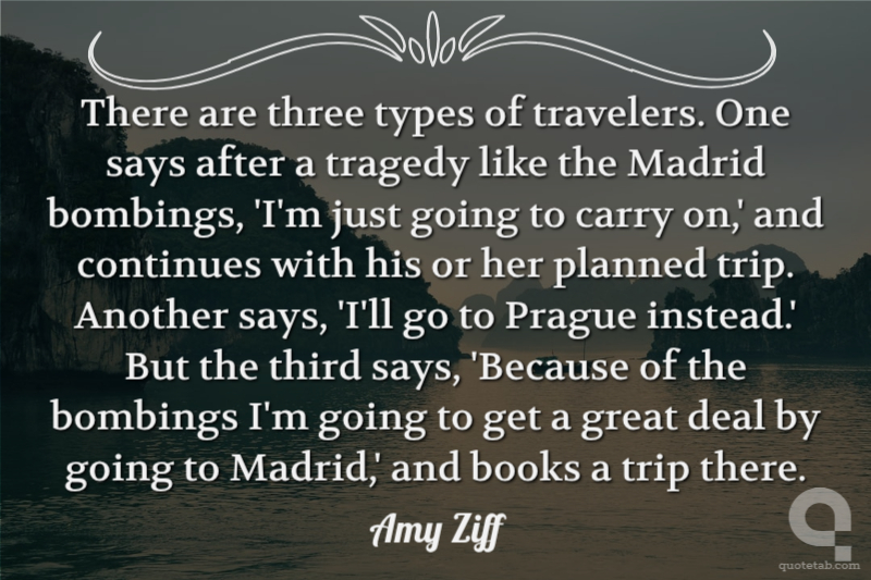 There are three types of travelers. One says after a tragedy like the Madrid bombings, 'I'm just going to carry on,' and continues with his or her planned trip. Another says, 'I'll go to Prague instead.' But the third says, 'Because of the bombings I'm going to get a great deal by going to Madrid,' and books a trip there.