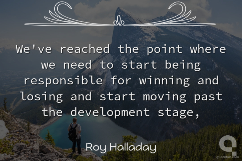 We've reached the point where we need to start being responsible for winning and losing and start moving past the development stage,