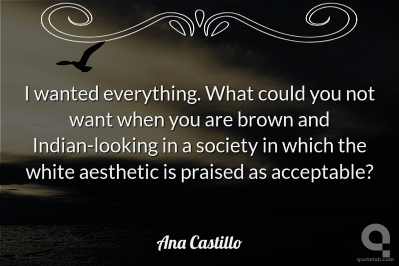 I wanted everything. What could you not want when you are brown and Indian-looking in a society in which the white aesthetic is praised as acceptable?
