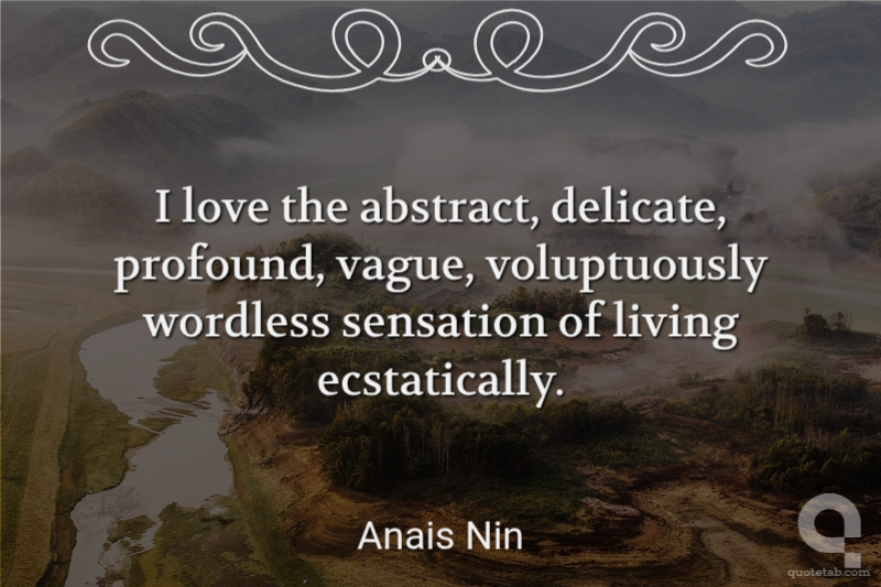 I love the abstract, delicate, profound, vague, voluptuously wordless sensation of living ecstatically.