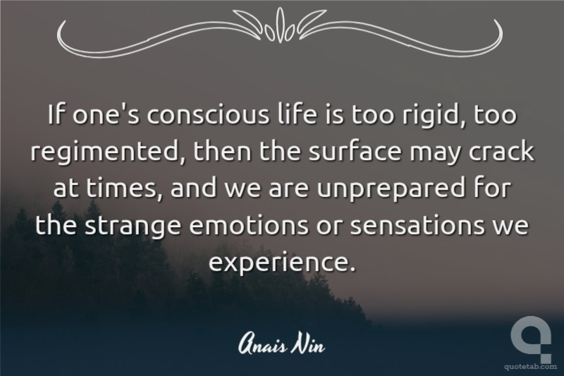If one's conscious life is too rigid, too regimented, then the surface may crack at times, and we are unprepared for the strange emotions or sensations we experience.
