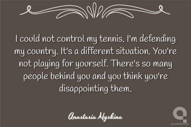 I could not control my tennis. I'm defending my country. It's a different situation. You're not playing for yourself. There's so many people behind you and you think you're disappointing them.