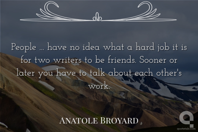 People ... have no idea what a hard job it is for two writers to be friends. Sooner or later you have to talk about each other's work.