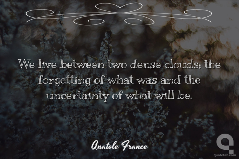 We live between two dense clouds; the forgetting of what was and the uncertainty of what will be.