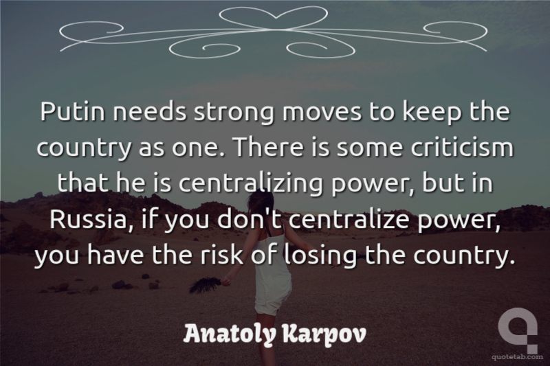 Putin needs strong moves to keep the country as one. There is some criticism that he is centralizing power, but in Russia, if you don't centralize power, you have the risk of losing the country.