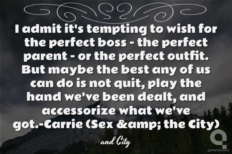 I admit it's tempting to wish for the perfect boss - the perfect parent - or the perfect outfit. But maybe the best any of us can do is not quit, play the hand we've been dealt, and accessorize what we've got.-Carrie (Sex & the City)