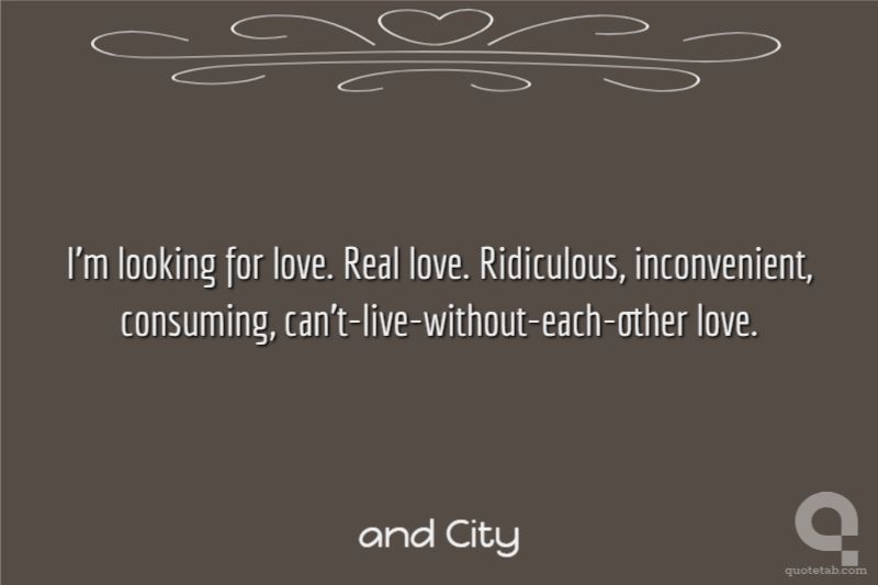 I'm looking for love. Real love. Ridiculous, inconvenient, consuming, can't-live-without-each-other love.
