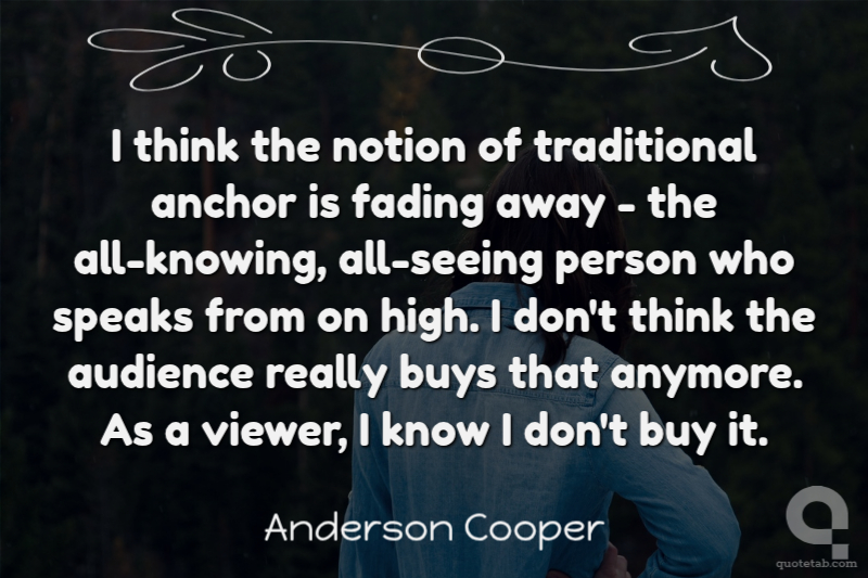 I think the notion of traditional anchor is fading away - the all-knowing, all-seeing person who speaks from on high. I don't think the audience really buys that anymore. As a viewer, I know I don't buy it.