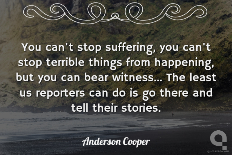 You can't stop suffering, you can't stop terrible things from happening, but you can bear witness... The least us reporters can do is go there and tell their stories.