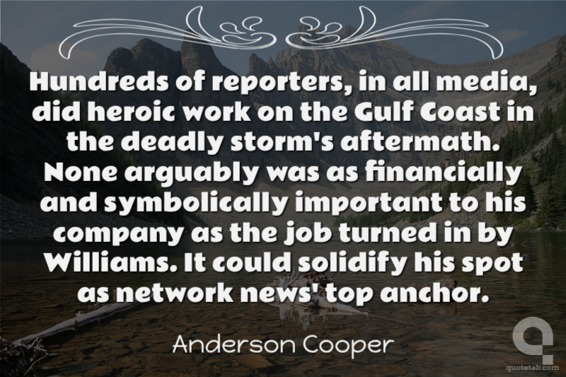 Hundreds of reporters, in all media, did heroic work on the Gulf Coast in the deadly storm's aftermath. None arguably was as financially and symbolically important to his company as the job turned in by Williams. It could solidify his spot as network news' top anchor.