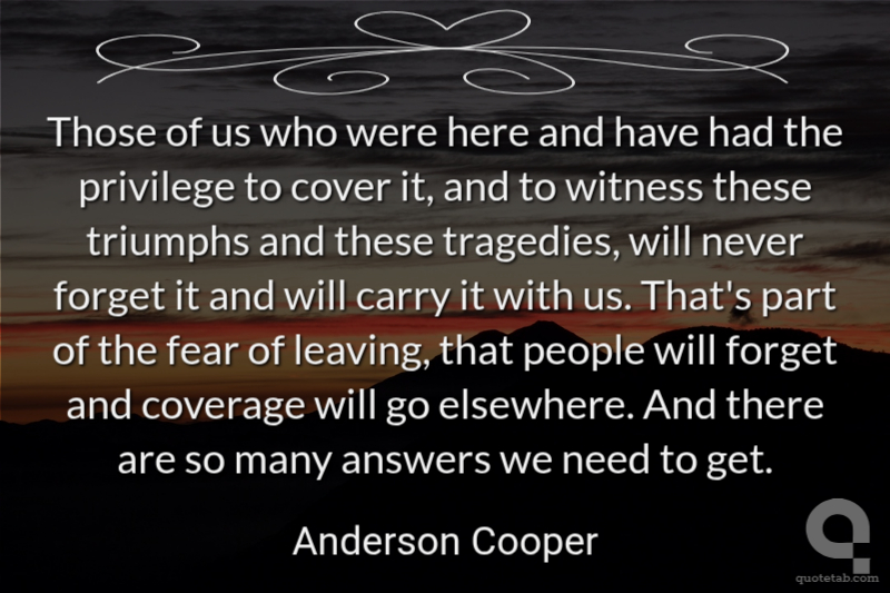 Those of us who were here and have had the privilege to cover it, and to witness these triumphs and these tragedies, will never forget it and will carry it with us. That's part of the fear of leaving, that people will forget and coverage will go elsewhere. And there are so many answers we need to get.