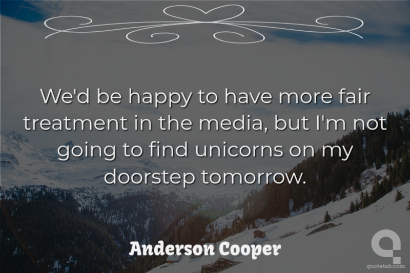 We'd be happy to have more fair treatment in the media, but I'm not going to find unicorns on my doorstep tomorrow.