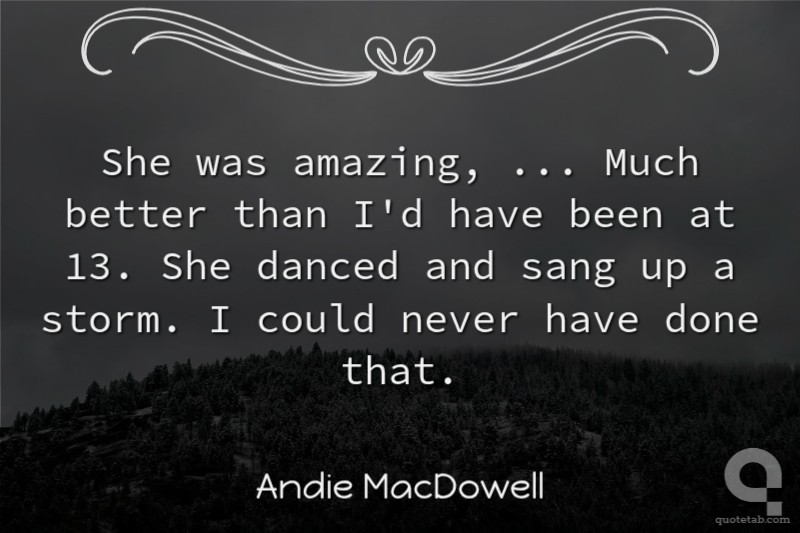 She was amazing, ... Much better than I'd have been at 13. She danced and sang up a storm. I could never have done that.