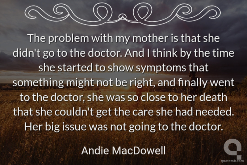 The problem with my mother is that she didn't go to the doctor. And I think by the time she started to show symptoms that something might not be right, and finally went to the doctor, she was so close to her death that she couldn't get the care she had needed. Her big issue was not going to the doctor.
