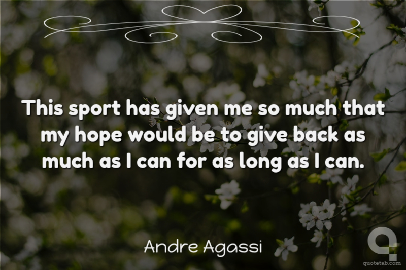 This sport has given me so much that my hope would be to give back as much as I can for as long as I can.