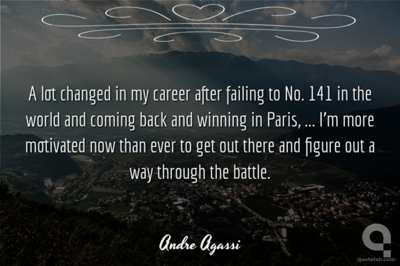 A lot changed in my career after failing to No. 141 in the world and coming back and winning in Paris, ... I'm more motivated now than ever to get out there and figure out a way through the battle.
