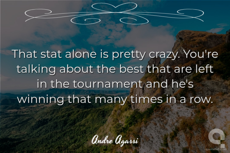 That stat alone is pretty crazy, ... You're talking about the best that are left in the tournament and he's winning that many times in a row.