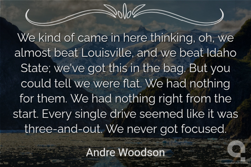 We kind of came in here thinking, oh, we almost beat Louisville, and we beat Idaho State; we've got this in the bag. But you could tell we were flat. We had nothing for them. We had nothing right from the start. Every single drive seemed like it was three-and-out. We never got focused.