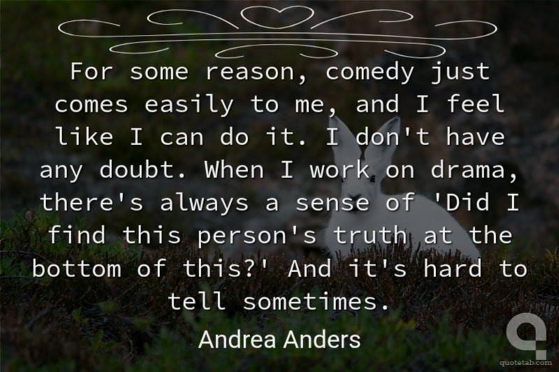 For some reason, comedy just comes easily to me, and I feel like I can do it. I don't have any doubt. When I work on drama, there's always a sense of 'Did I find this person's truth at the bottom of this?' And it's hard to tell sometimes.
