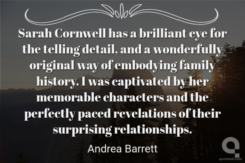 Sarah Cornwell has a brilliant eye for the telling detail, and a wonderfully original way of embodying family history. I was captivated by her memorable characters and the perfectly paced revelations of their surprising relationships.
