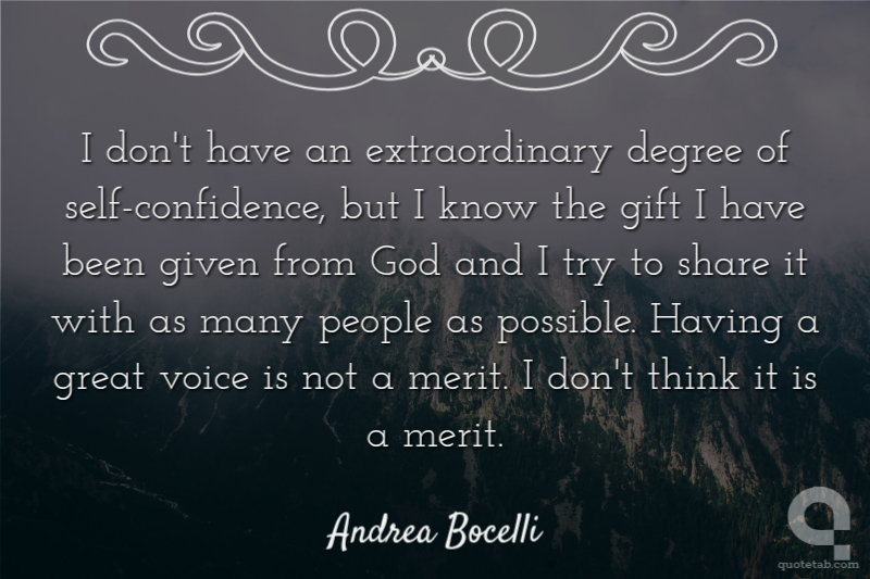 I don't have an extraordinary degree of self-confidence, but I know the gift I have been given from God and I try to share it with as many people as possible. Having a great voice is not a merit. I don't think it is a merit.