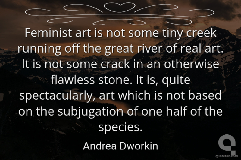 Feminist art is not some tiny creek running off the great river of real art. It is not some crack in an otherwise flawless stone. It is, quite spectacularly, art which is not based on the subjugation of one half of the species.