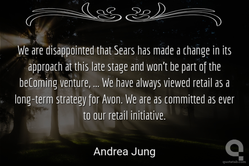 We are disappointed that Sears has made a change in its approach at this late stage and won't be part of the beComing venture, ... We have always viewed retail as a long-term strategy for Avon. We are as committed as ever to our retail initiative.