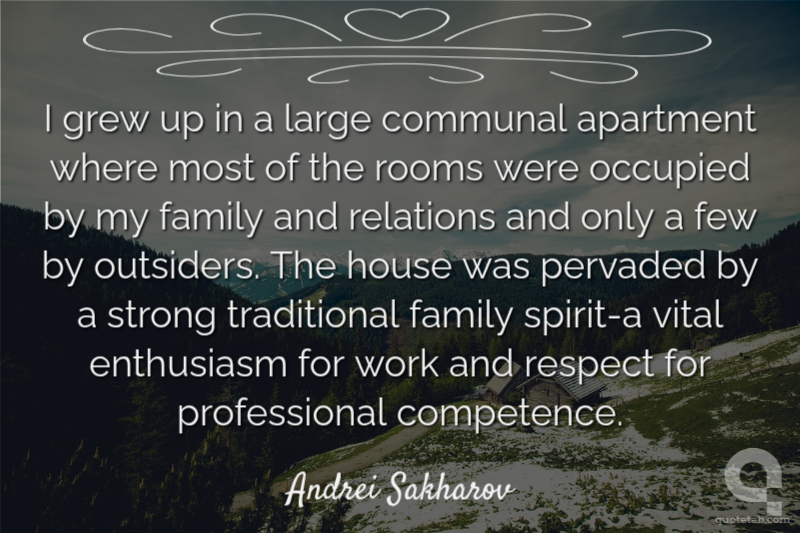 I grew up in a large communal apartment where most of the rooms were occupied by my family and relations and only a few by outsiders. The house was pervaded by a strong traditional family spirit-a vital enthusiasm for work and respect for professional competence.