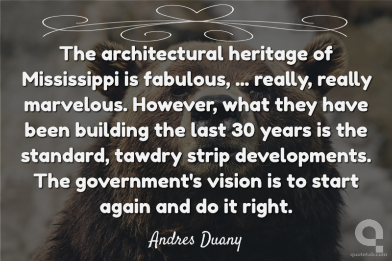 The architectural heritage of Mississippi is fabulous, ... really, really marvelous. However, what they have been building the last 30 years is the standard, tawdry strip developments. The government's vision is to start again and do it right.