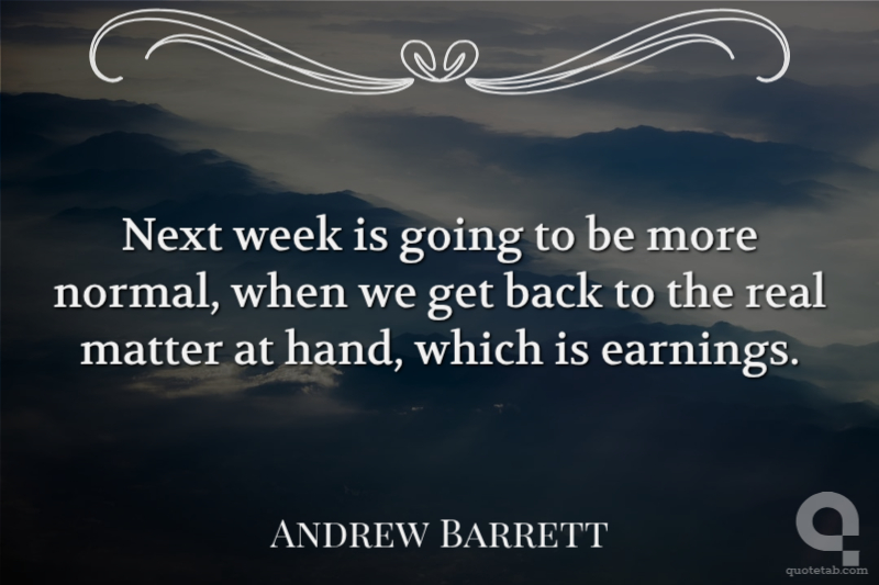 Next week is going to be more normal, when we get back to the real matter at hand, which is earnings.