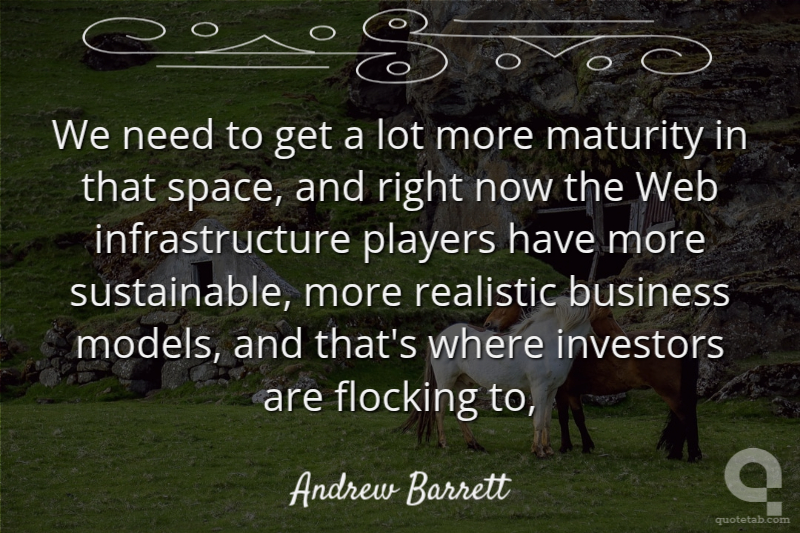 We need to get a lot more maturity in that space, and right now the Web infrastructure players have more sustainable, more realistic business models, and that's where investors are flocking to,