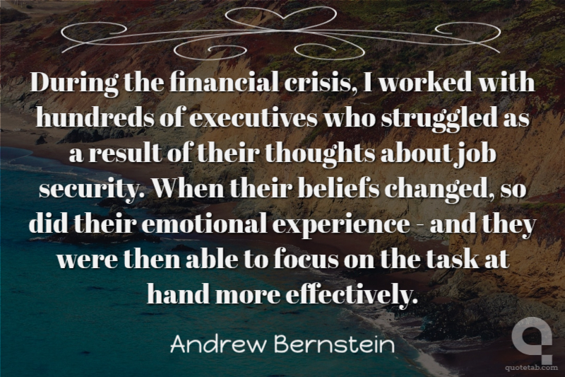During the financial crisis, I worked with hundreds of executives who struggled as a result of their thoughts about job security. When their beliefs changed, so did their emotional experience - and they were then able to focus on the task at hand more effectively.