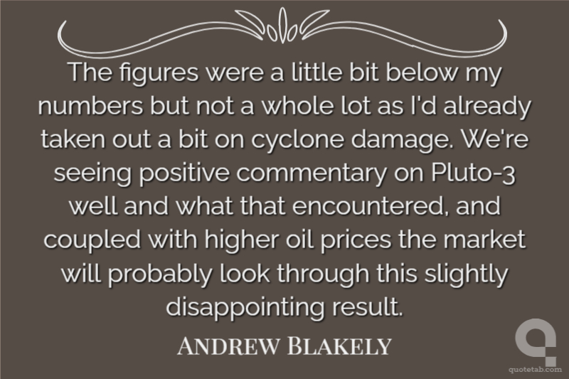 The figures were a little bit below my numbers but not a whole lot as I'd already taken out a bit on cyclone damage. We're seeing positive commentary on Pluto-3 well and what that encountered, and coupled with higher oil prices the market will probably look through this slightly disappointing result.