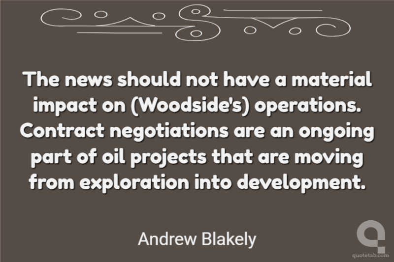 The news should not have a material impact on (Woodside's) operations. Contract negotiations are an ongoing part of oil projects that are moving from exploration into development.