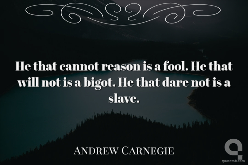 He that cannot reason is a fool. He that will not is a bigot. He that dare not is a slave.