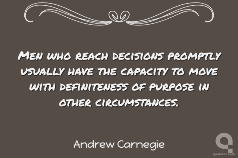 Men who reach decisions promptly usually have the capacity to move with definiteness of purpose in other circumstances.