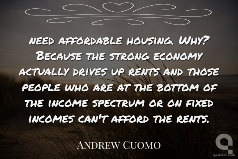 need affordable housing. Why? Because the strong economy actually drives up rents and those people who are at the bottom of the income spectrum or on fixed incomes can't afford the rents.