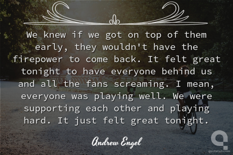 We knew if we got on top of them early, they wouldn't have the firepower to come back. It felt great tonight to have everyone behind us and all the fans screaming. I mean, everyone was playing well. We were supporting each other and playing hard. It just felt great tonight.