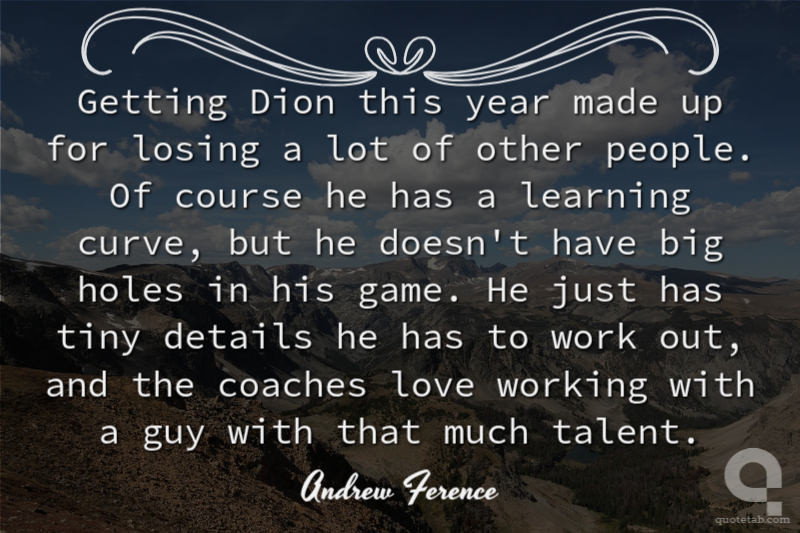 Getting Dion this year made up for losing a lot of other people. Of course he has a learning curve, but he doesn't have big holes in his game. He just has tiny details he has to work out, and the coaches love working with a guy with that much talent.