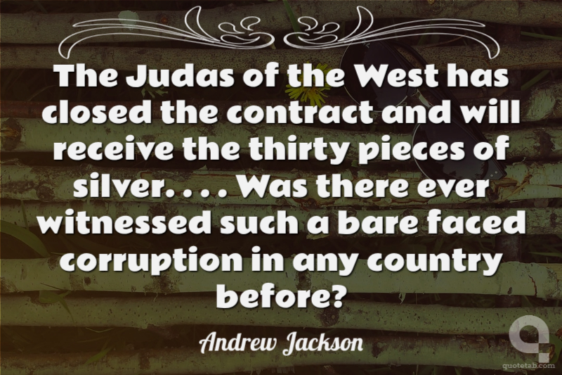 The Judas of the West has closed the contract and will receive the thirty pieces of silver. . . . Was there ever witnessed such a bare faced corruption in any country before?