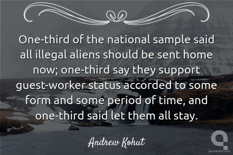 One-third of the national sample said all illegal aliens should be sent home now; one-third say they support guest-worker status accorded to some form and some period of time, and one-third said let them all stay.