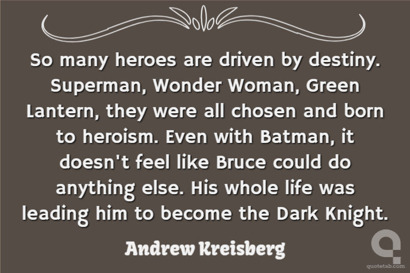 So many heroes are driven by destiny. Superman, Wonder Woman, Green Lantern, they were all chosen and born to heroism. Even with Batman, it doesn't feel like Bruce could do anything else. His whole life was leading him to become the Dark Knight.