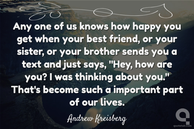 Any one of us knows how happy you get when your best friend, or your sister, or your brother sends you a text and just says, "Hey, how are you? I was thinking about you." That's become such a important part of our lives.