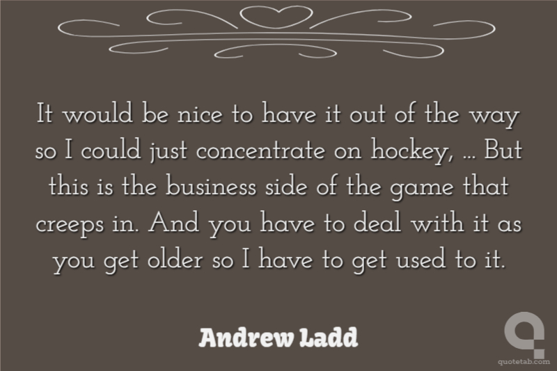 It would be nice to have it out of the way so I could just concentrate on hockey, ... But this is the business side of the game that creeps in. And you have to deal with it as you get older so I have to get used to it.