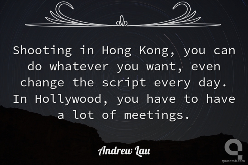 Shooting in Hong Kong, you can do whatever you want, even change the script every day. In Hollywood, you have to have a lot of meetings.