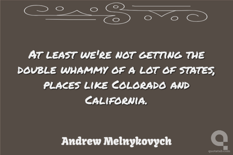 At least we're not getting the double whammy of a lot of states, places like Colorado and California.