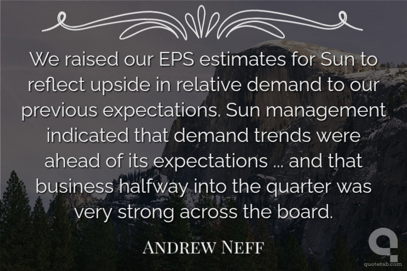 We raised our EPS estimates for Sun to reflect upside in relative demand to our previous expectations. Sun management indicated that demand trends were ahead of its expectations ... and that business halfway into the quarter was very strong across the board.