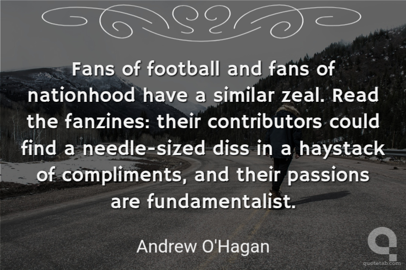 Fans of football and fans of nationhood have a similar zeal. Read the fanzines: their contributors could find a needle-sized diss in a haystack of compliments, and their passions are fundamentalist.